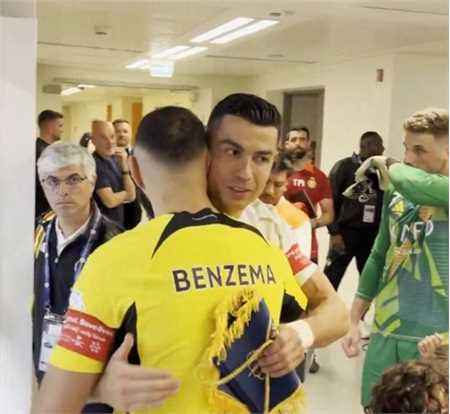 比赛开始前,c罗和本泽马在球员通道相遇,交谈了几句随后拥抱致意,两人均以队长身份代表各自的球队出战。