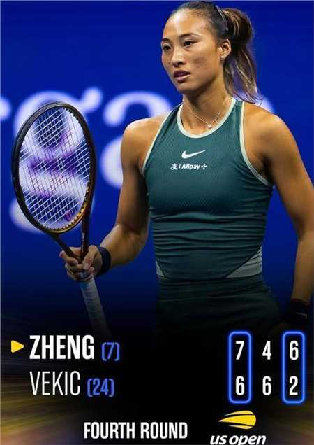 2024年美网女单第4轮比赛,郑钦文同维基奇继奥运会决赛后再次相遇。首盘比赛郑钦文抢七艰难赢下胜利,第二盘郑钦文在第10局遭到破发4-6被拖入决胜盘,决胜盘郑钦文两次破发6-2赢下胜利。整场比赛耗时2小时50分钟,郑钦文获胜成功闯入八强。