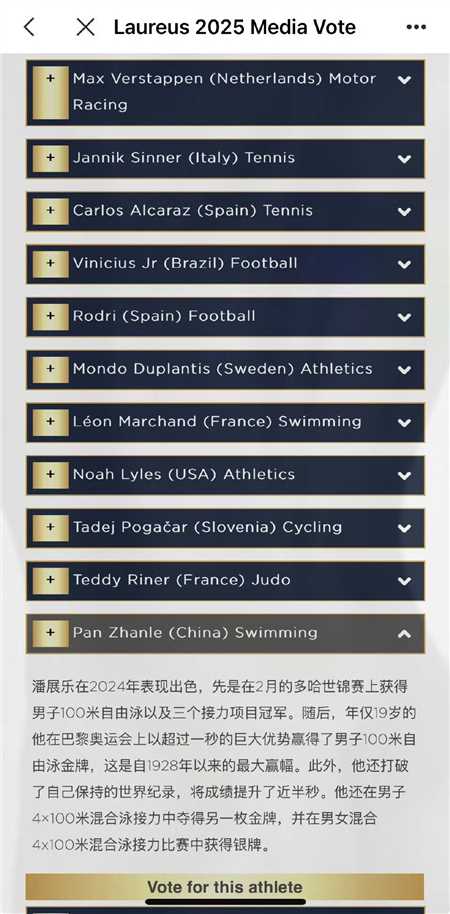 我国一姐郑钦文喜获提名,与之竞争的还有在欧洲杯上大放异彩的小将亚马尔,夺得德甲联赛沙拉盘的足球俱乐部勒沃库森队等,可以说同样竞争激烈。笔者预测很有可能是亚马尔获胜,毕竟世界第一运动在梅罗老去的情况下,适时造星是非常有必要的。