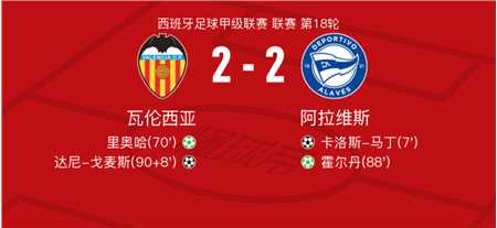北京时间12月22日瓦伦西亚vs阿拉维斯,里奥哈得到全场最高的8.3分,马努-桑切斯得到全场最低的6.1分