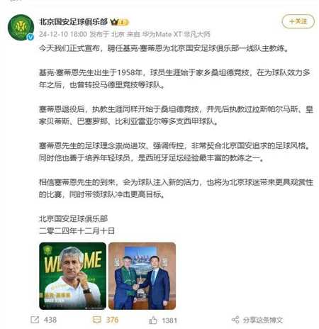 中超休赛期间的第一桩“轰动性”消息本周出炉。北京国安连发两条公告,先送别苏亚雷斯,再迎来塞蒂恩。没错,就是那个执教过巴塞罗那,带过梅西的名帅塞蒂恩。放眼如今中超各队的主帅,国安新教头的履历,算得上最为耀眼。然而考虑到除里皮外的多数知名外教,在中国都没能收获好的结果,也有不少球迷和网友,不看好塞帅的前景,毕竟对于大部分声名在外的洋帅而言,很多时候,中超挺“坑”的。