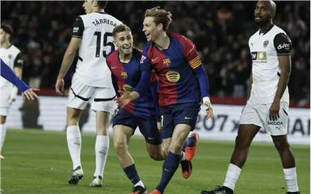 巴塞罗那在本轮西甲比赛中7-1大胜瓦伦西亚,弗朗基-德容在本场比赛中首发出战,并为球队打入了第一粒进球。