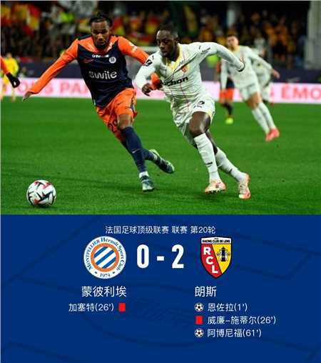 在法国足球顶级联赛第20轮的较量中,蒙彼利埃坐镇主场迎战朗斯。比赛伊始,朗斯的恩佐拉便在阿德里安-托马森的精妙助攻下,成功攻破对方球门,为球队取得领先。比赛进行到一段时间后,场上局势骤然紧张,朗斯的威廉-施蒂尔和蒙彼利埃的加塞特相继被罚出场,双方各自减少一名球员。随后,朗斯再次展现出强大的进攻实力,阿德里安-托马森再次送出助攻,帮助阿博尼福再下一城。最终,朗斯凭借两粒精彩进球,以2-0的比分战胜蒙彼利埃,取得了这场比赛的胜利。