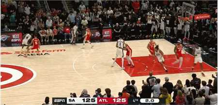 第四节老鹰特雷-杨拿下12分,马刺文班亚马拿下7分,最终老鹰125-126不敌马刺