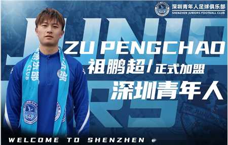 深圳青年人足球俱乐部发布公告,宣布前湖南湘涛球员祖鹏超加盟。