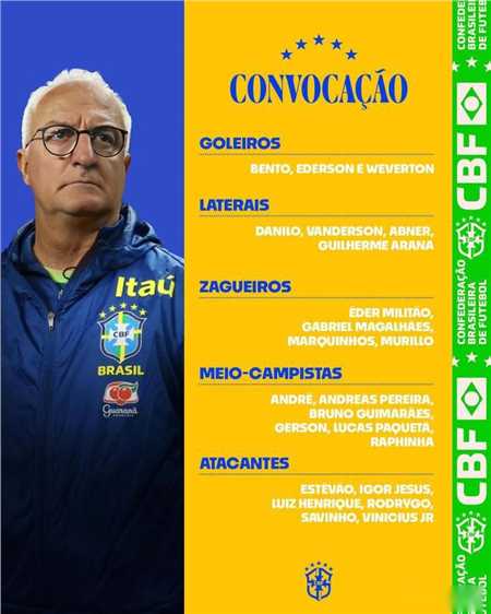巴西国家队官方公布了11月份世预赛大名单,维尼修斯领衔,内马尔缺席,萨维尼奥、埃斯特旺在列。